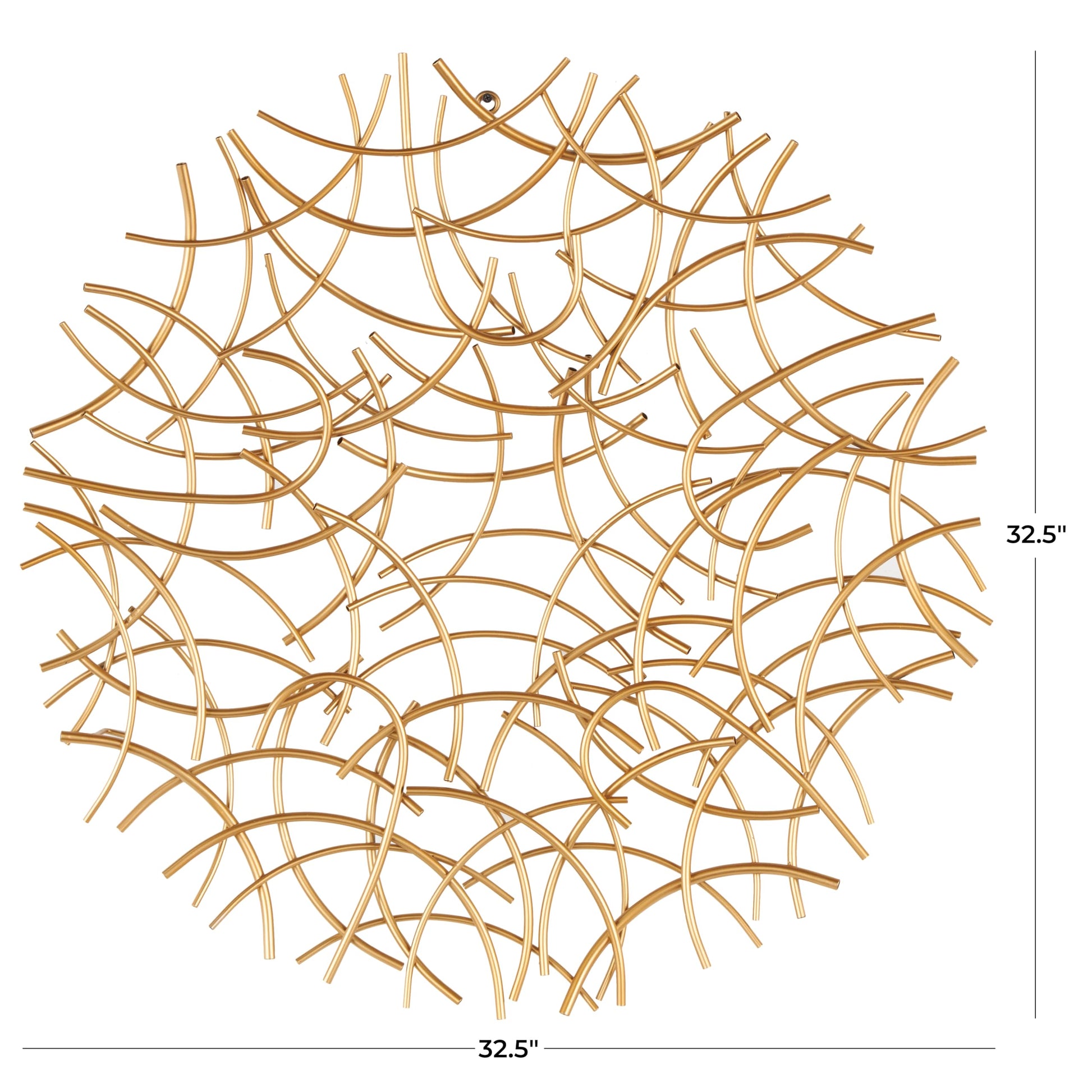 Abstract Metal Wall Art with Overlapping Curved Sticks, Gold Decorative Wall Sculpture 33"x33"