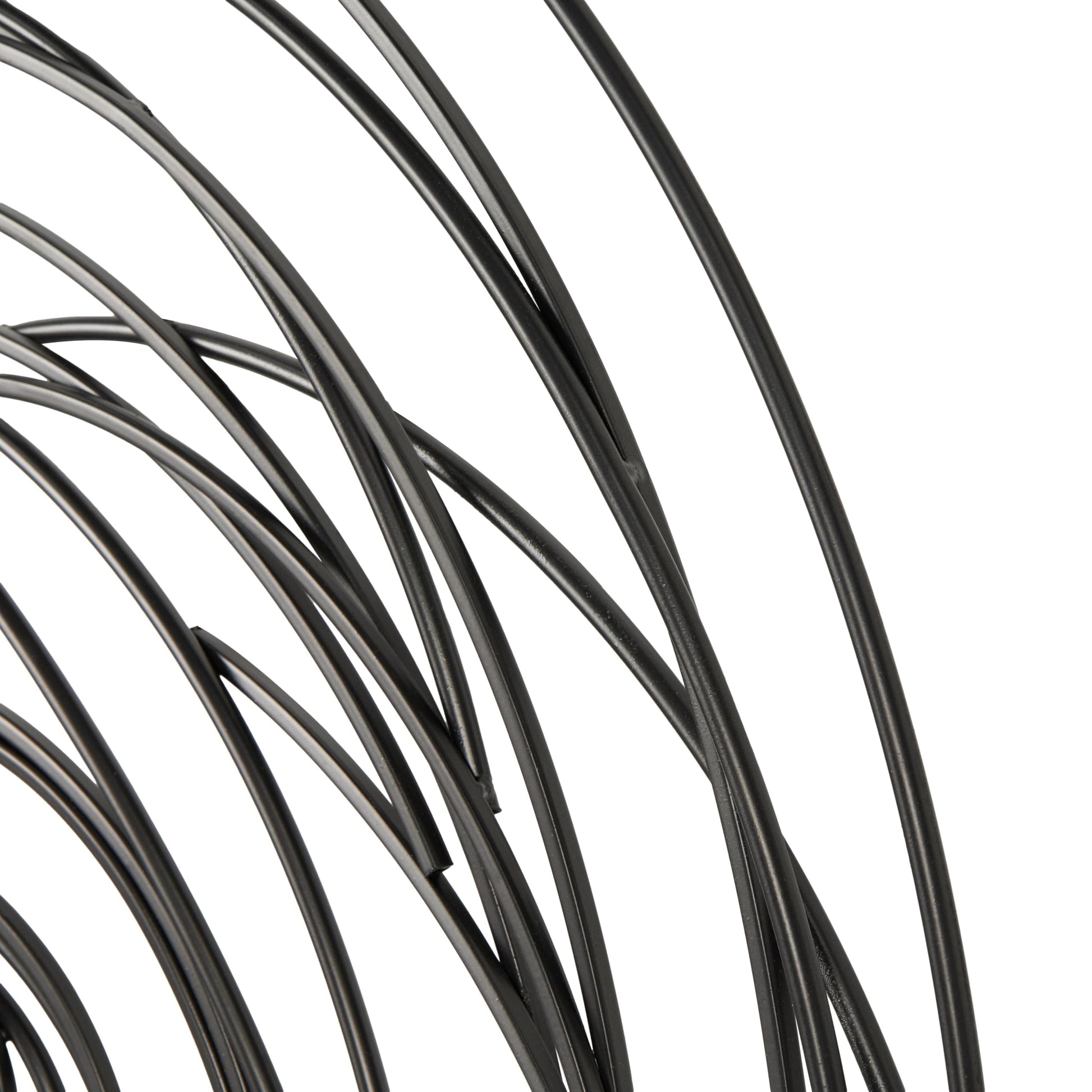 Details: Modern room wall decor has been welded with iron and applied with a black finish to create a stunning piece of art. Matte black wall art for living room stands out with overlapping lines formed in a round shape, making it a focal point in any room. Wipe clean with a dry cloth. Ideal for a variety of settings, this abstract wall sculpture can be used in living rooms, bedrooms or offices. This item ships in 1 carton. Can be hung horizontally or vertically using the holes; nails and screws not included. Suitable for indoor use only. This item ships fully assembled in one piece. This is a single black colored wall sculptures. Modern style.