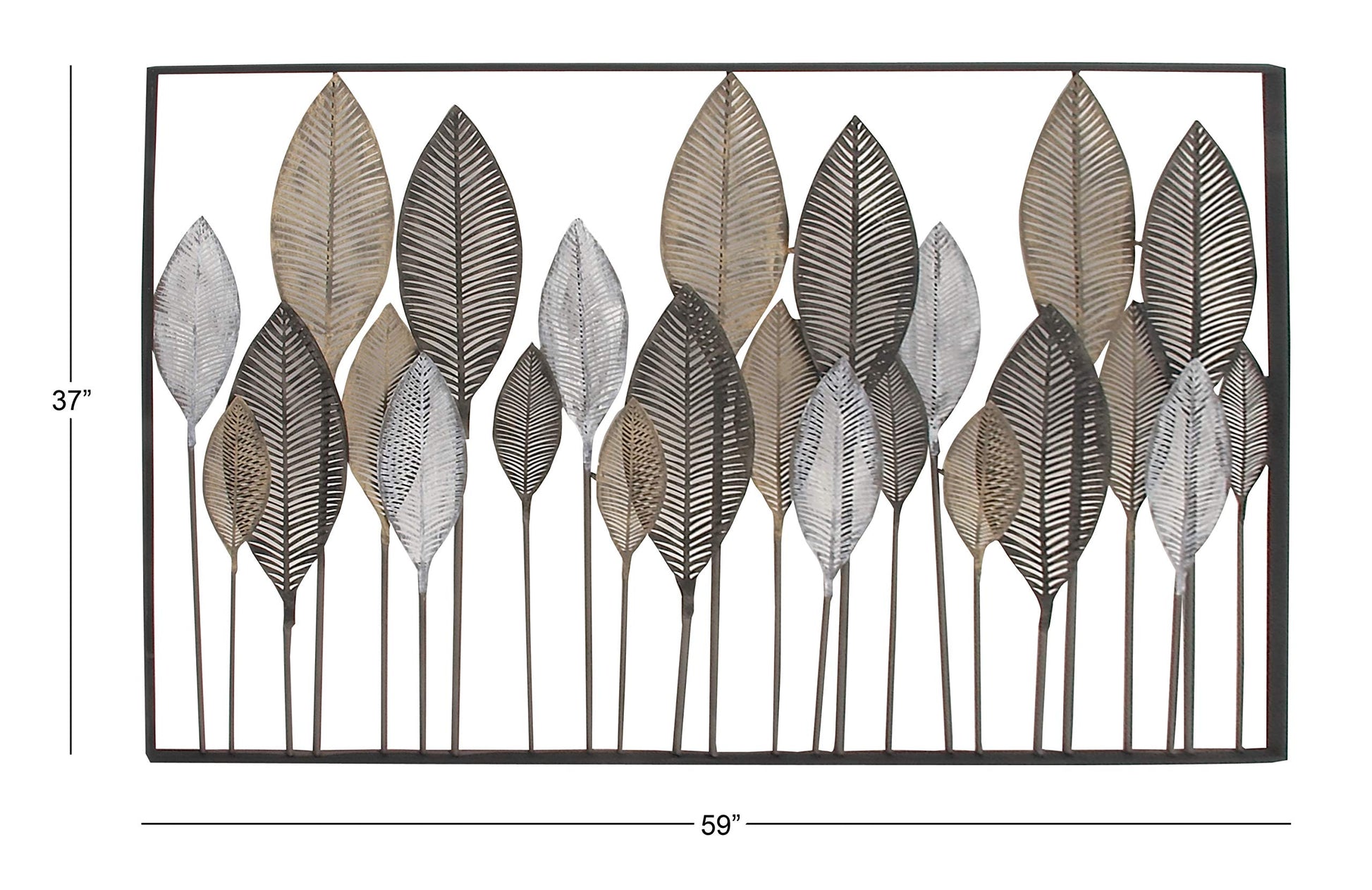 Deco 79 Metal Leaf Wall Decor, Tall Cut-Out Wall Sculpture with Intricate Laser Cut Designs, 59" x 1" x 37", Bronze