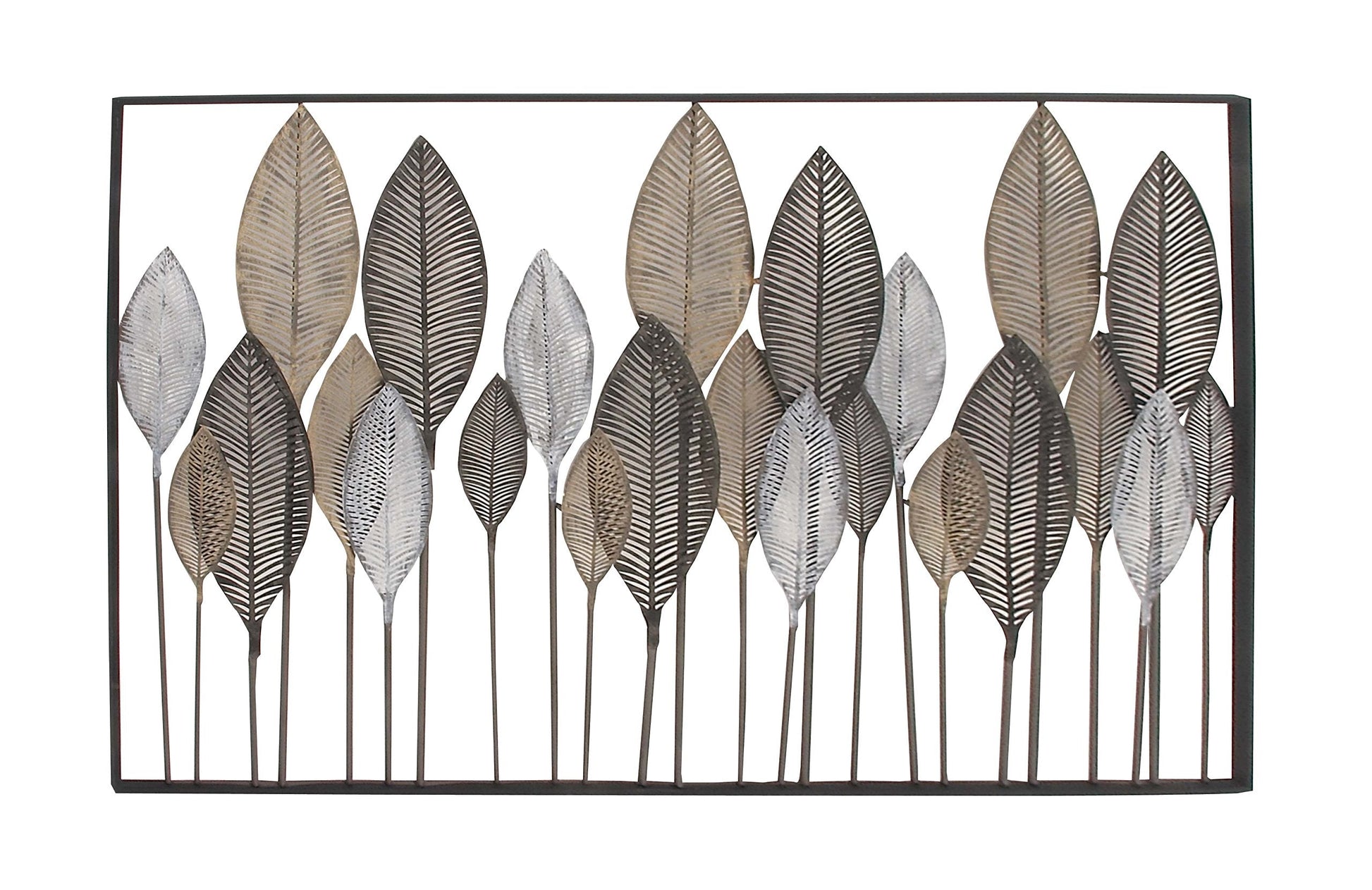 - BRONZE AND SILVER WALL ART FOR LIVING ROOM: Contemporary metal decor is a dimensional wall accent piece featuring eight stemmed leaf designs in distressed black, bronze, white, and metallic gold