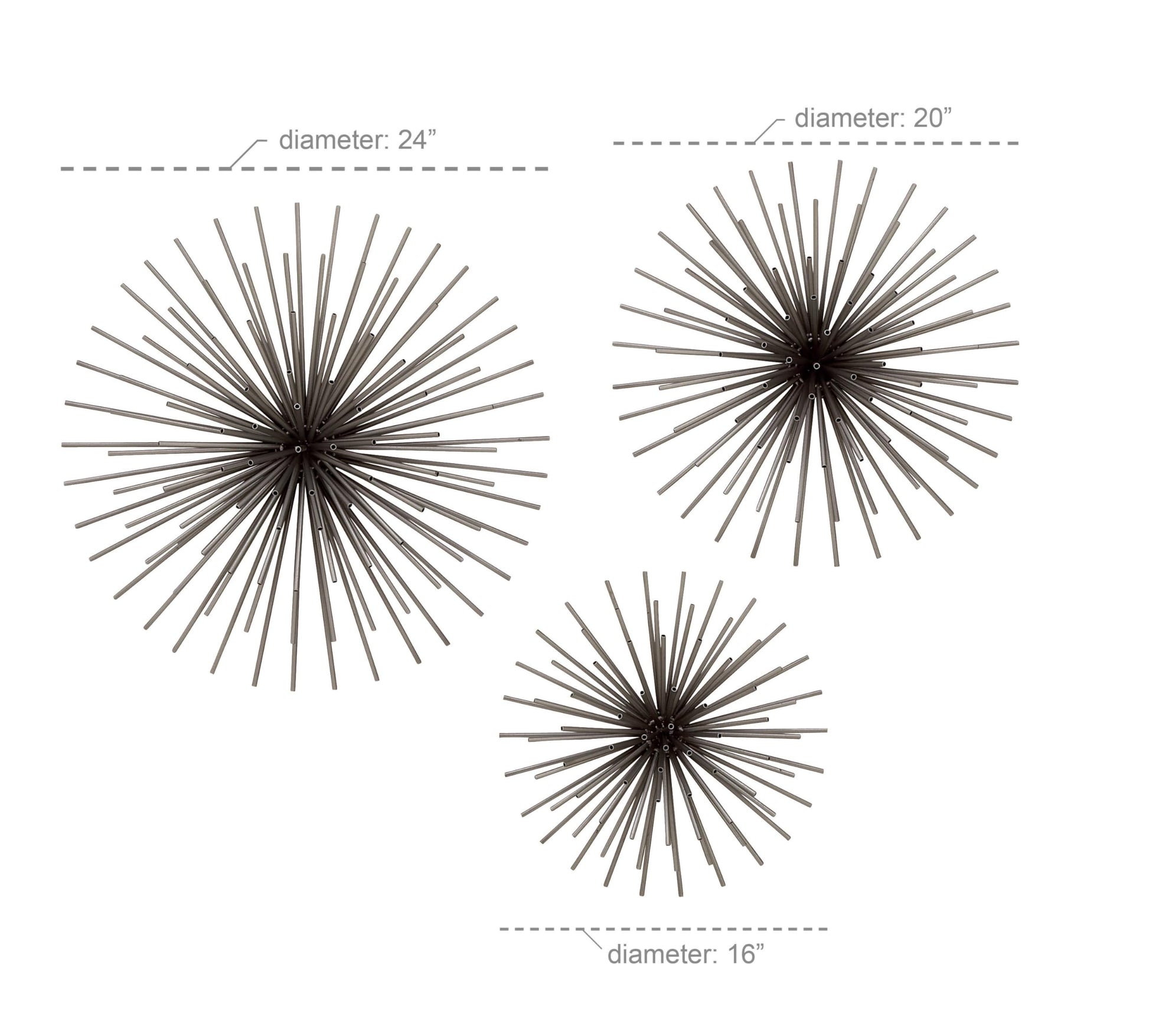 - METAL WALL HOME DECOR: Sunburst wall décor pieces feature a solid tin wire construction