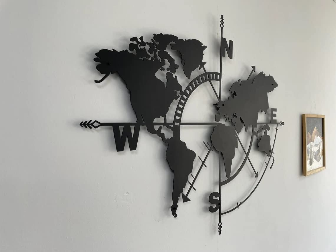 Metal World Map Wall Art, Black Decorative Wall Sculpture for Home, Office, Bedroom or Living Room 47"x36"