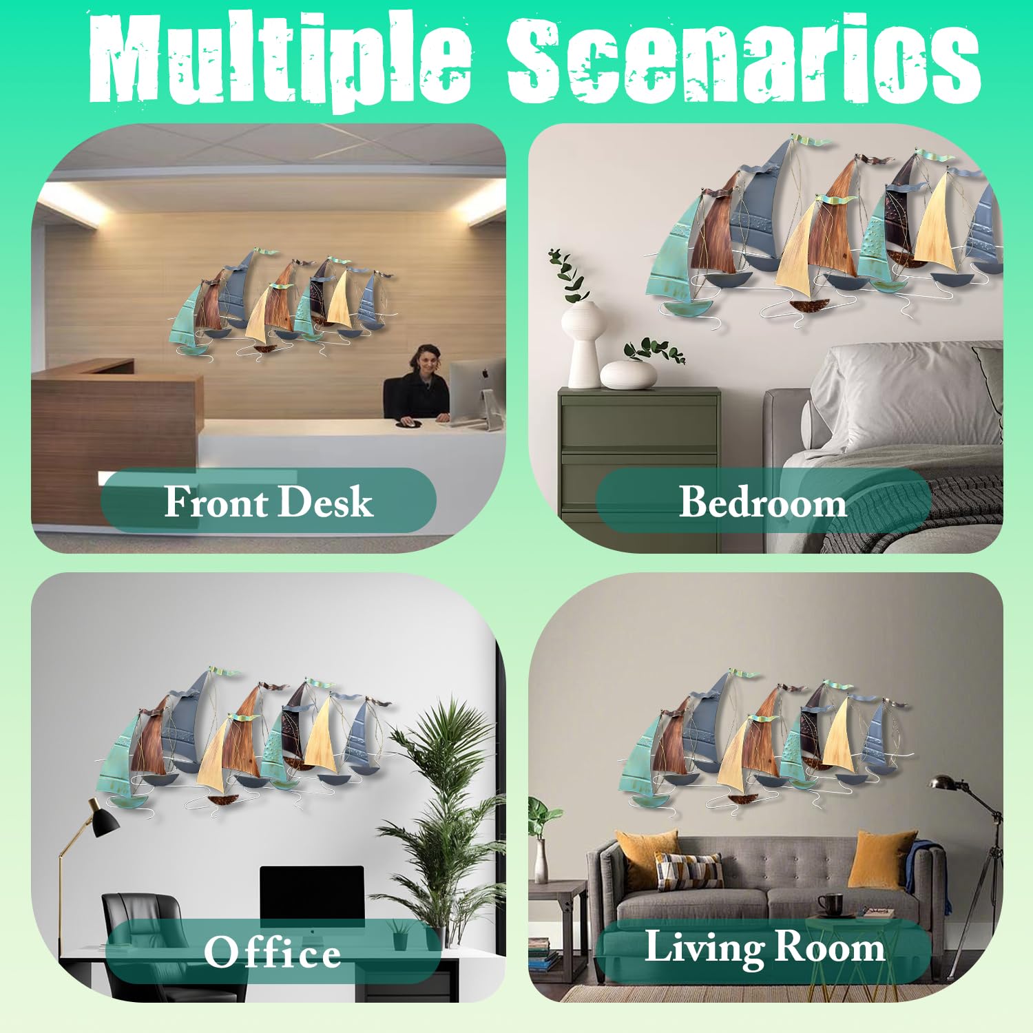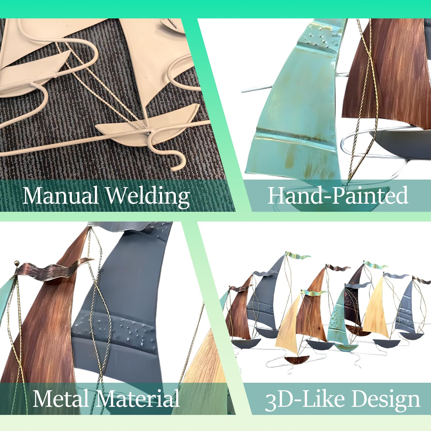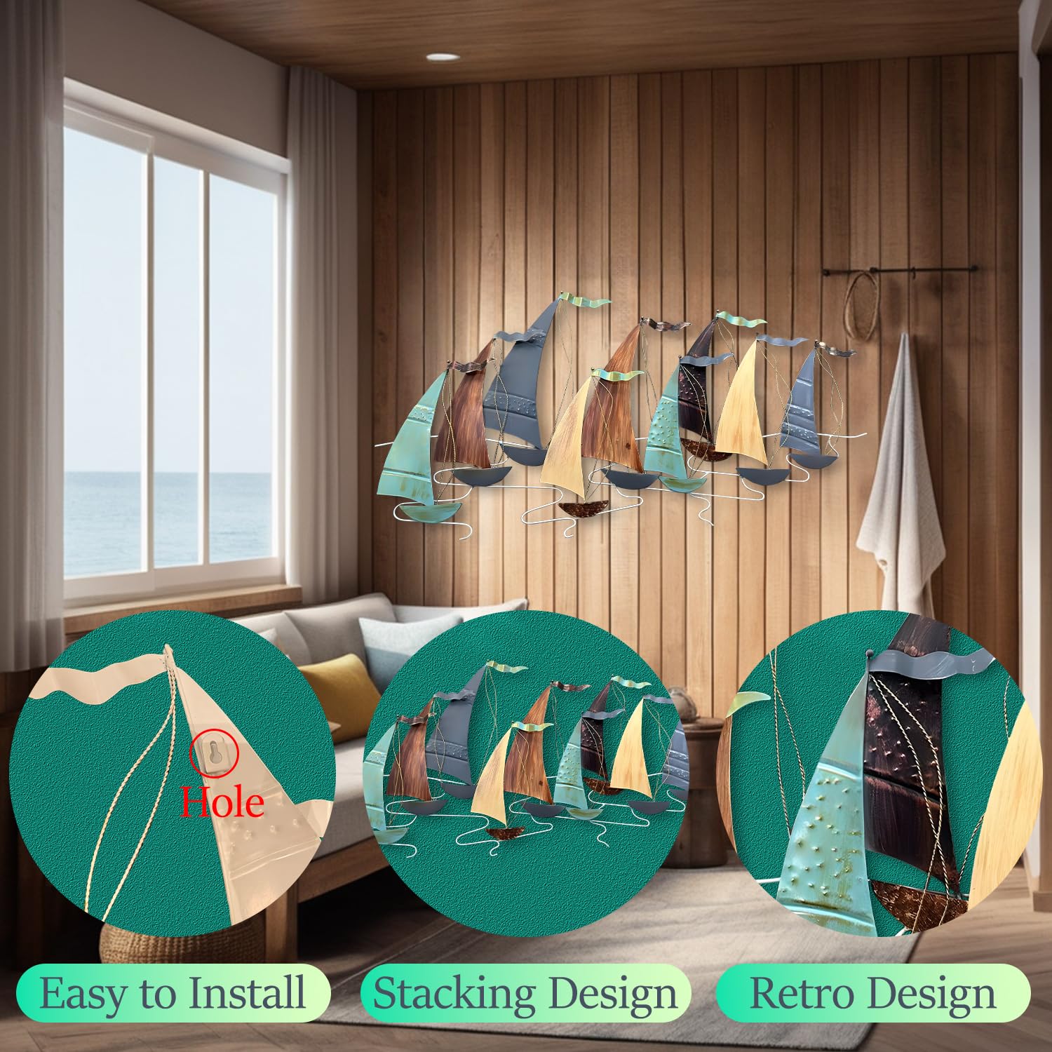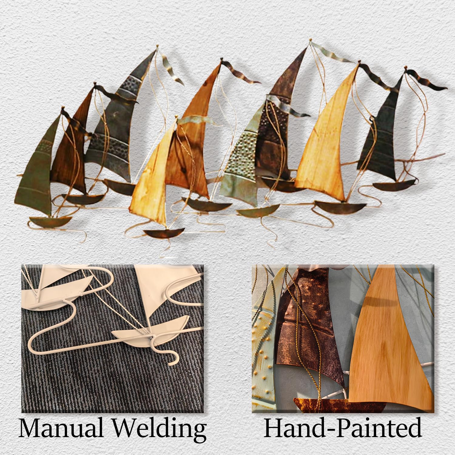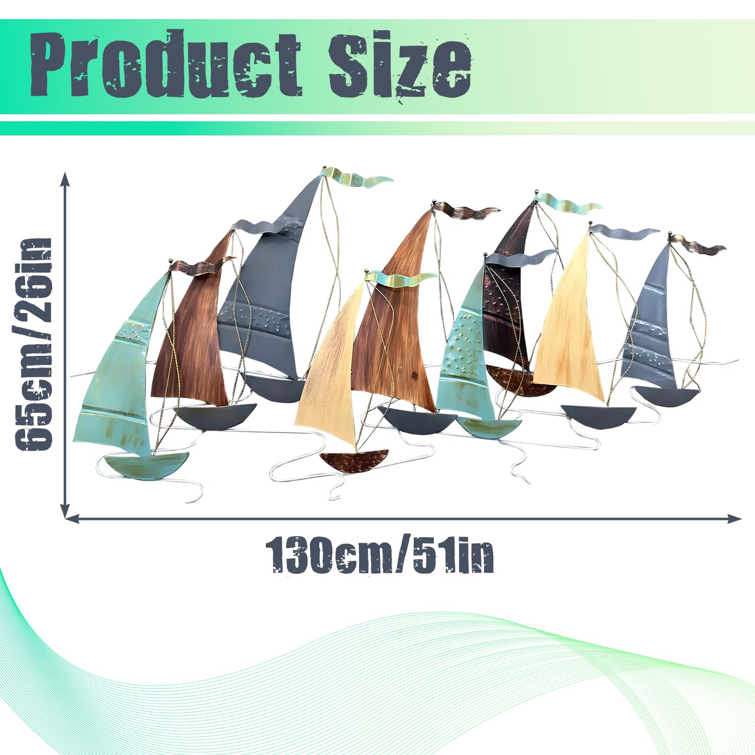 - Metal Sailboat Wall Decor : Metal sailboats wall decor add much brightness and refreshing feel of nature to your interior and create an relaxed ambience. It is a perfect choice for a contemporary home setting. Large size:51"x26"(130cmx65cm).