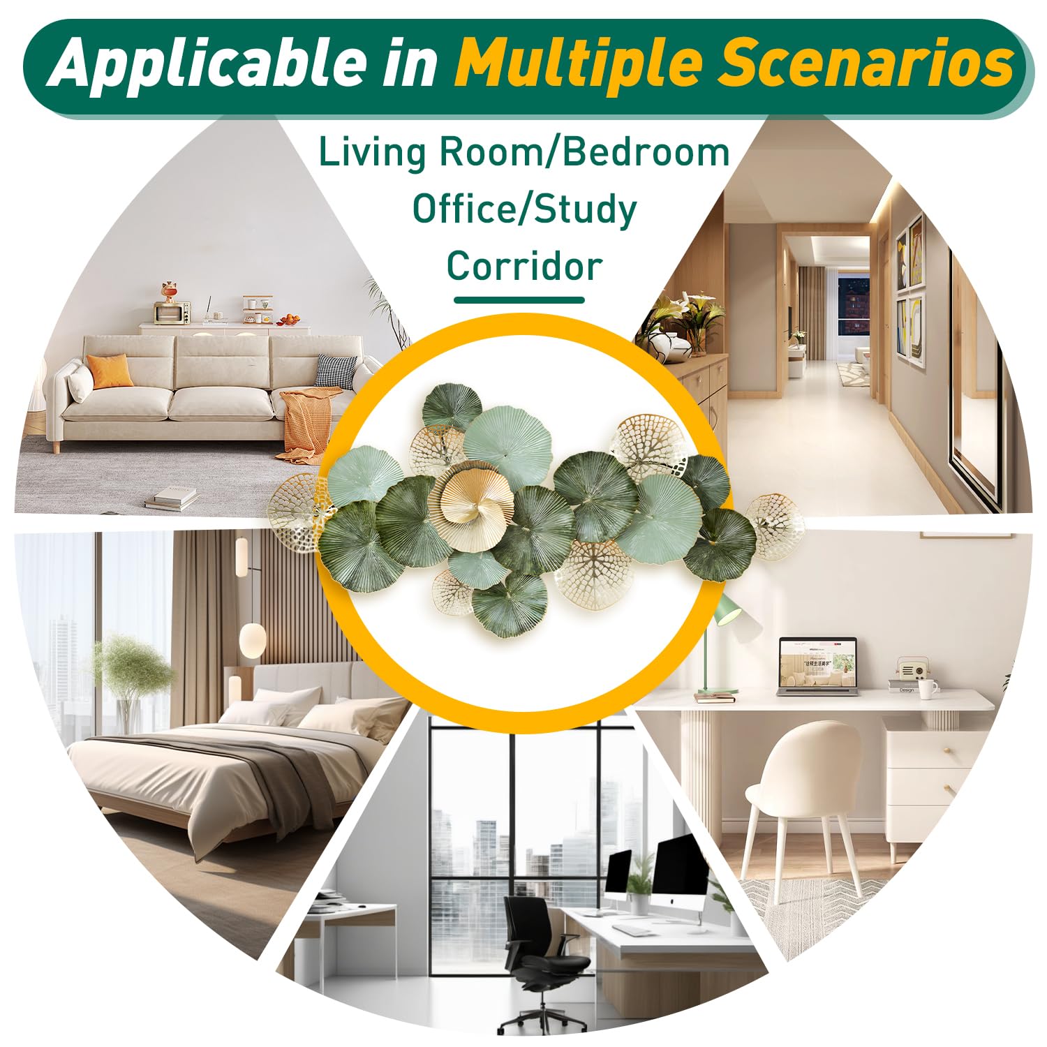 - Large Metal Wall Decor for Living Room : This large metal wall decor is multiple lotus leaves stacked on top of each other, 3D metal wall art will give you the character of vivid image on your wall. Green , gold, colorful leaves wall decoration are stacking together for a natural feel