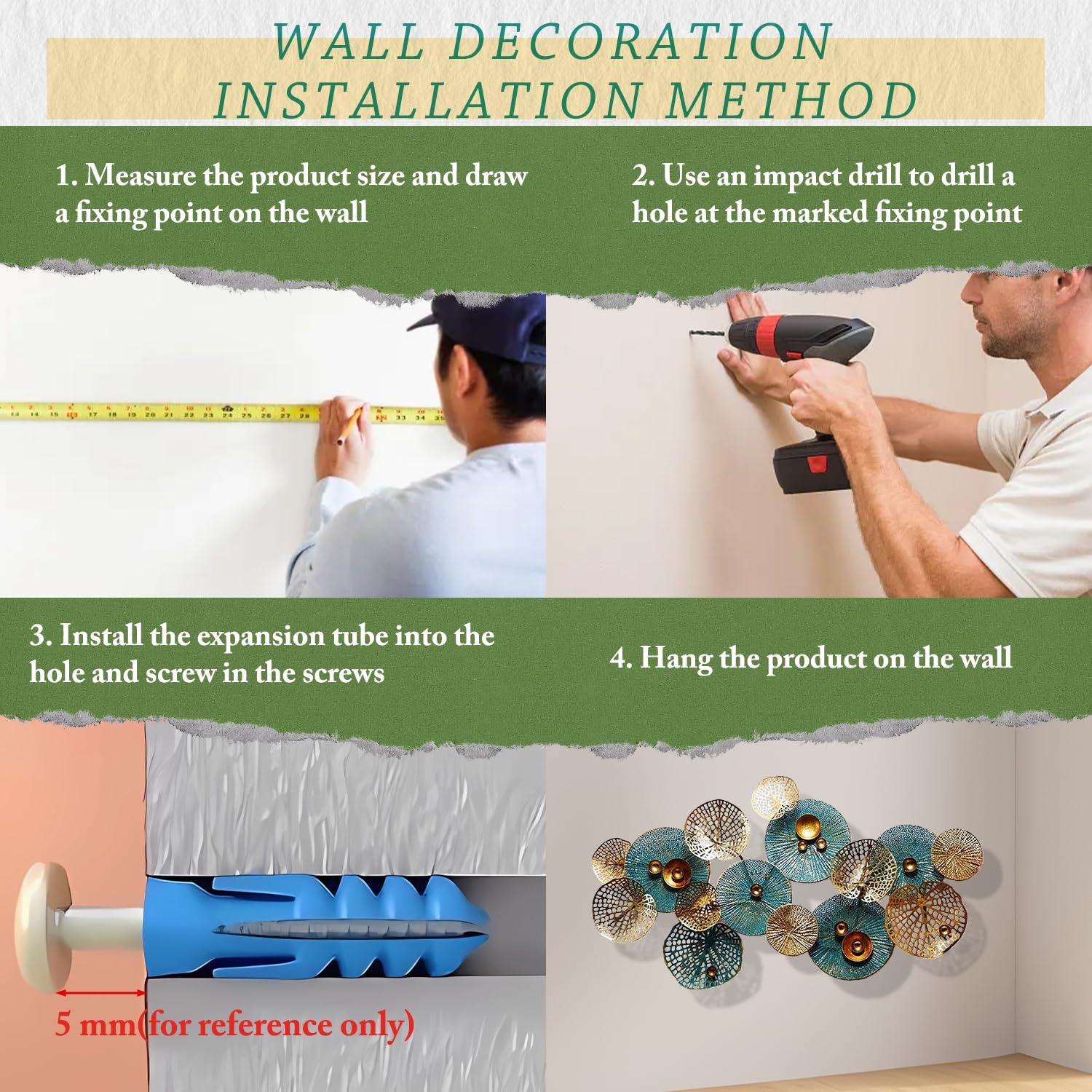 - Large Metal Wall Decor for Living Room : This large metal wall decor is multiple lotus leaves stacked on top of each other, 3D metal wall art will give you the character of vivid image on your wall. Blue, gold, and green colorful leaves wall decoration are stacking together for a natural feel.
