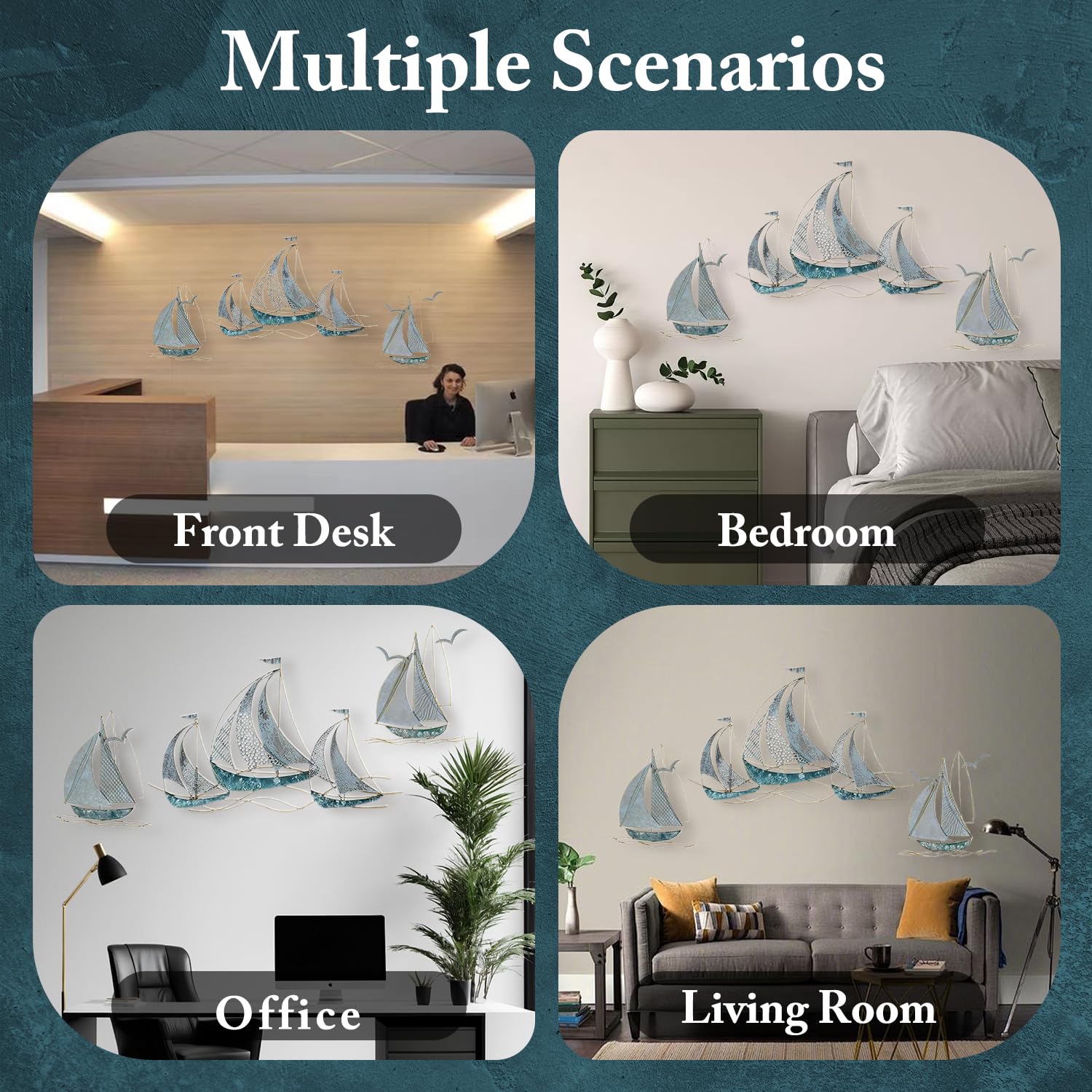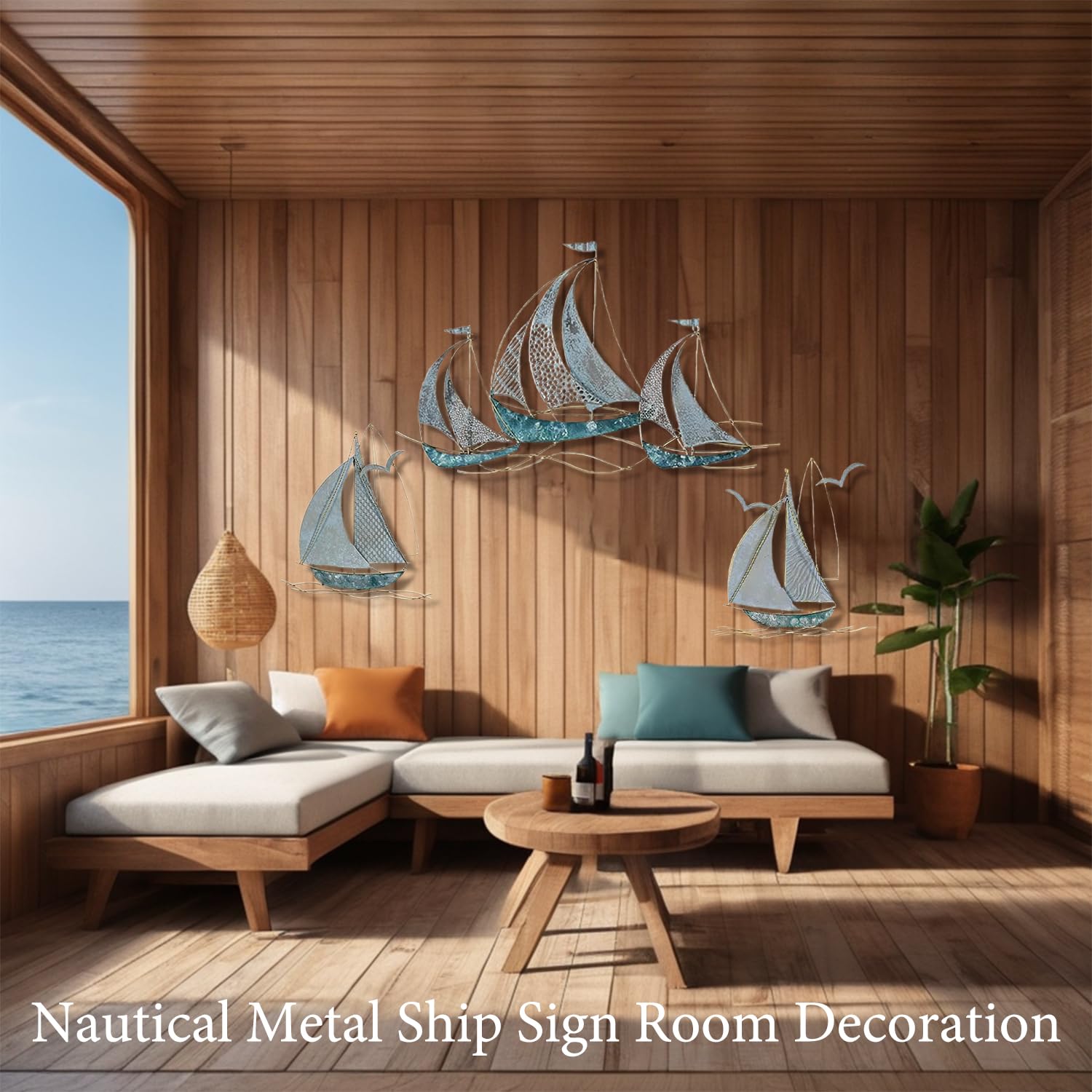 - Set of 3 Metal Sailboat Wall Decor : 3pcs Metal sailboats wall art add much brightness and refreshing feel of nature to your interior and create an relaxed ambience. It is a perfect choice for a contemporary home setting. Set of 3:Large size:34"x21"(86.4cmx54cm).Medium size:14.6"x15.7"(37cmx40cm).Small size:13"x15.7"(33cmx40cm)