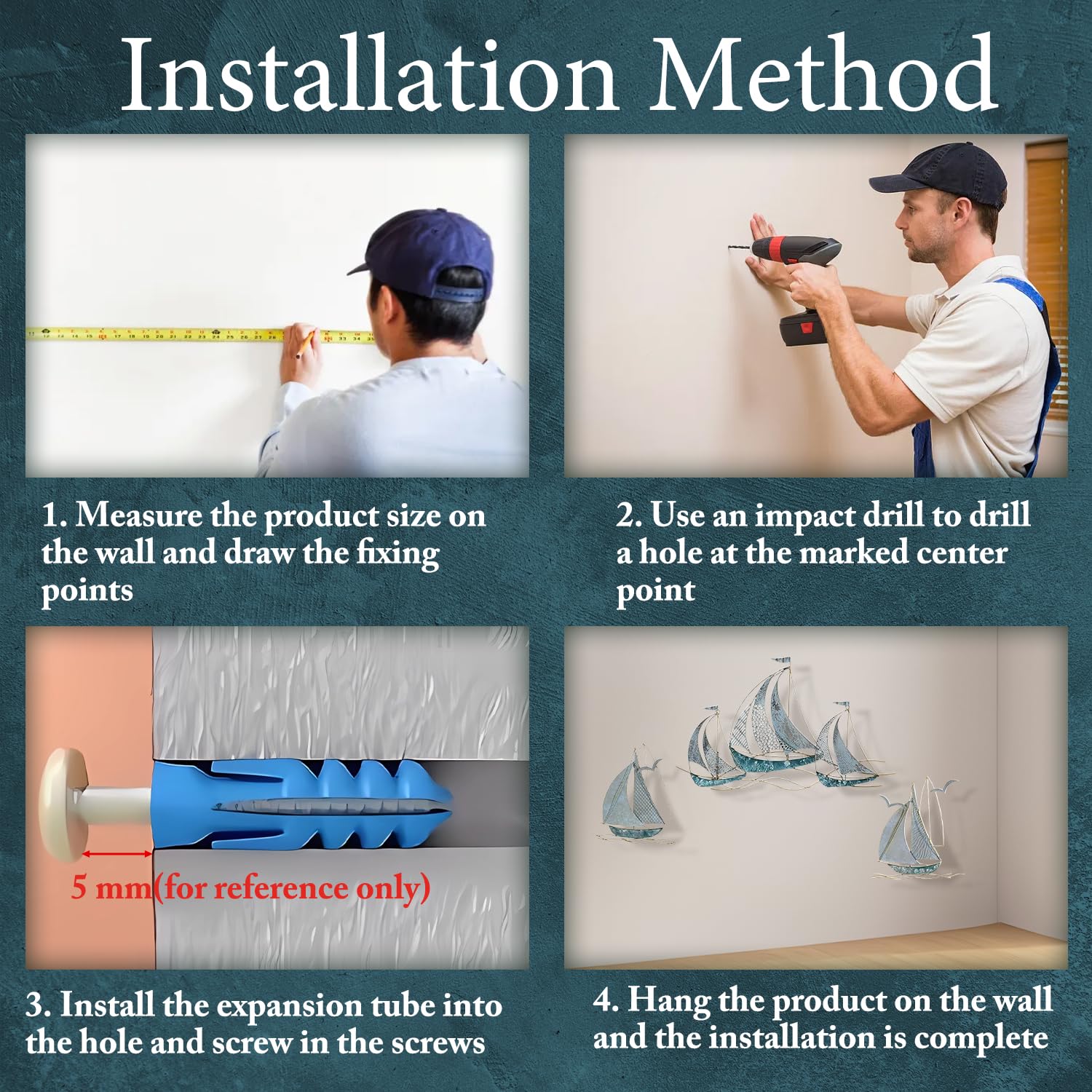 - Blue Nautical Boat Ornament : Indoor & Outdoor Wall Decoration, perfect wall decoration for bedroom, living room, bathroom wall, also suitable for restaurant, bar, office, hallway, bedroom, hallway ,hotel or any beach themed party & wedding decoration to add more nautical touch.