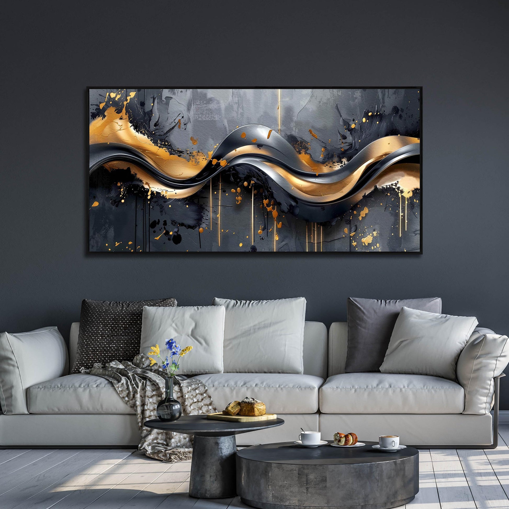 Elegant Black and Gold Canvas Wall Art, Large Modern Decorative Painting for Living Room or Office 29"x59"