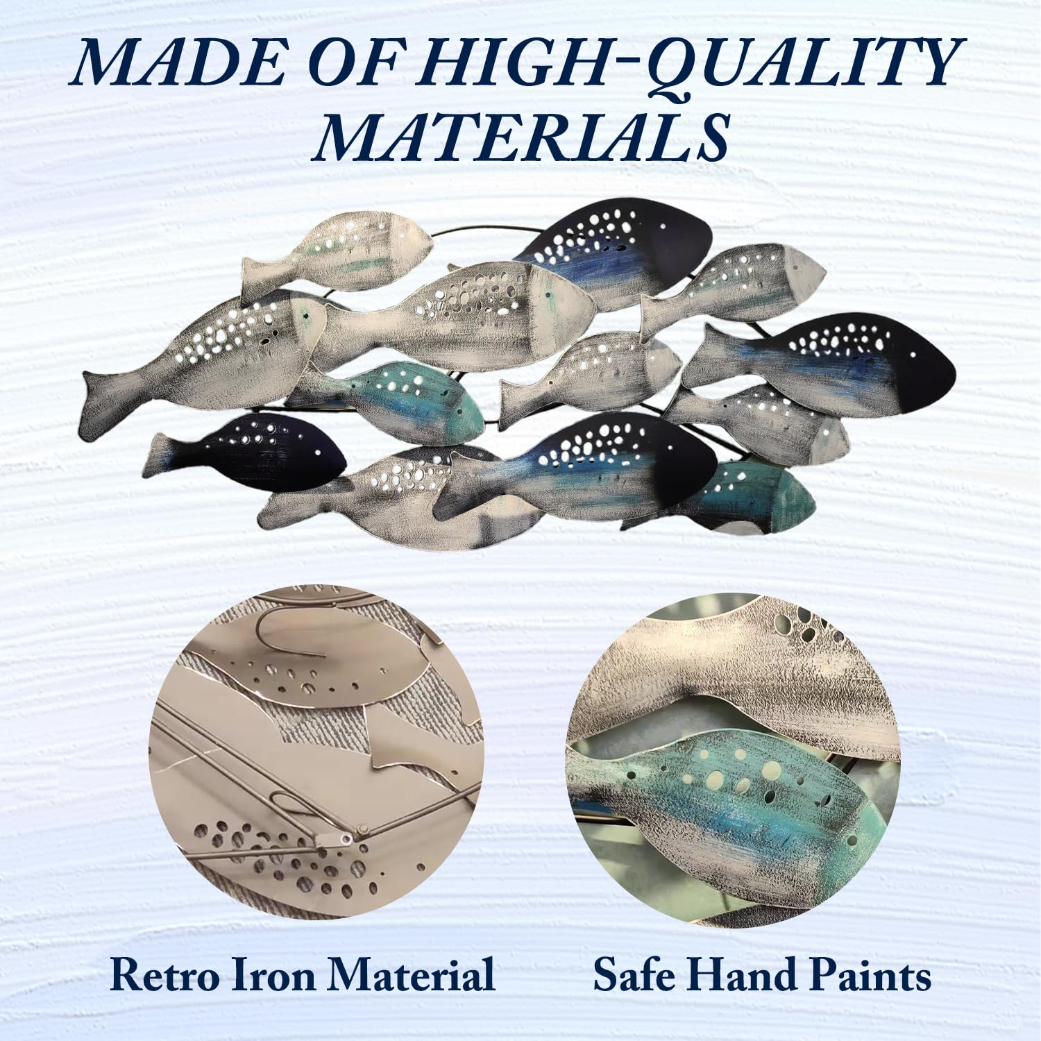 Coastal Ocean 3D Metal Fish Wall Sculpture, Hand-Painted Hanging Decor for Living Room, Bedroom or Dining Room 50"x20"
