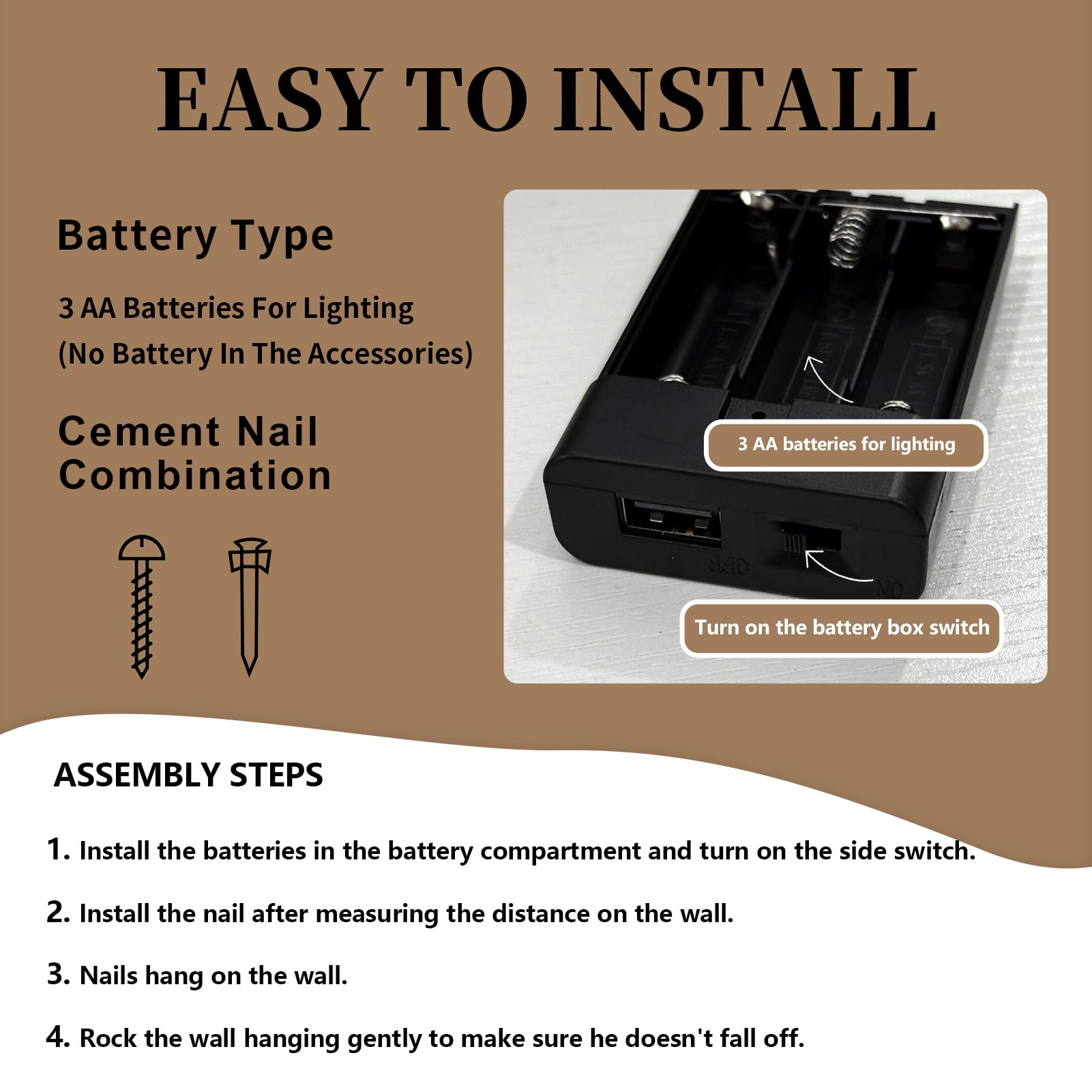 - 【Voice-Activated Lighting】Enhance ambiance with hands-free, voice-controlled illumination. The soft glow highlights its 3D wall art metal textures and auto-dim after 30 seconds, ideal for creating mood lighting in bedrooms, hallways, or modern black metal wall art displays.