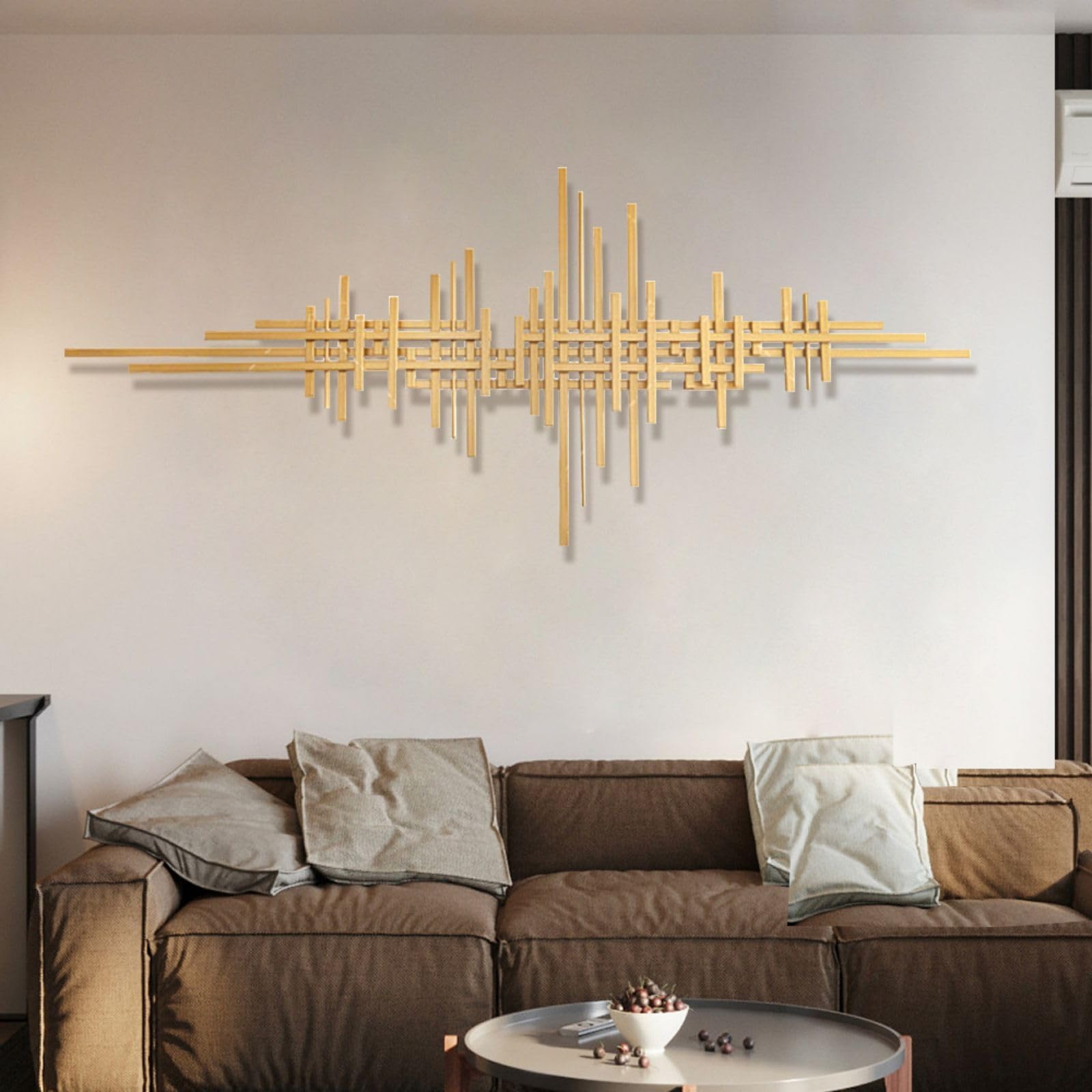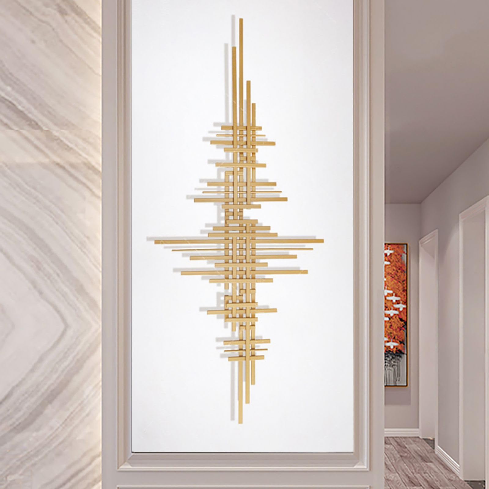 Modern Geometric Gold Metal Wall Art, Handmade Iron Wall Sculpture for Living Room, Dining Room or Hallway 47.2"x19.7"