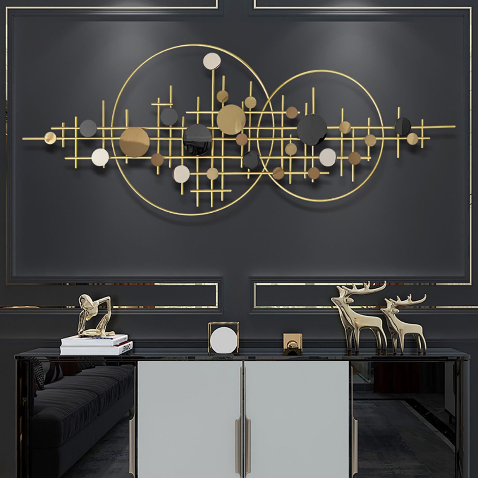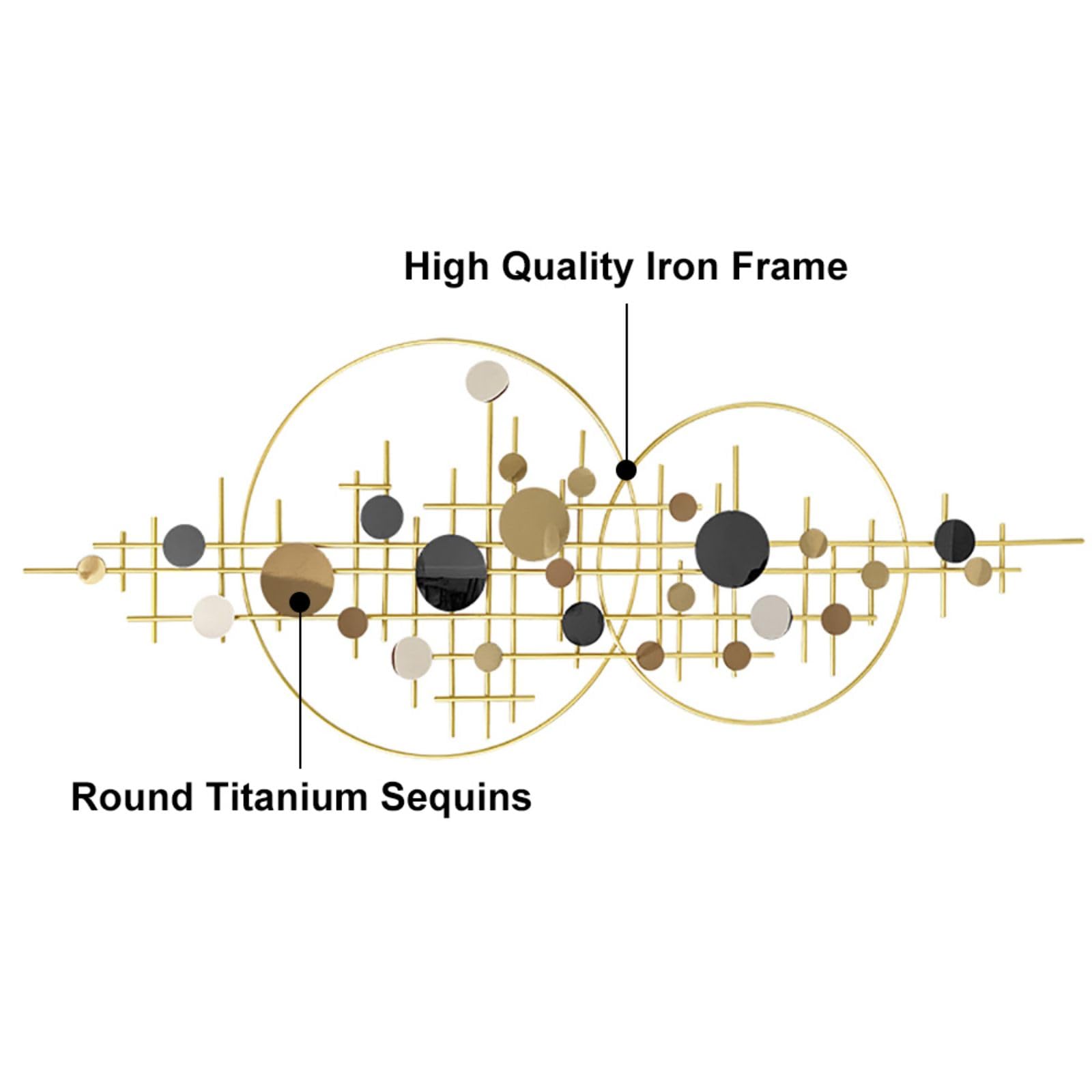 - Unique Artistic Design – Featuring a cross-frame base, two large circles, and shimmering circular sequins, this piece brings depth, movement, and elegance to your living space.
