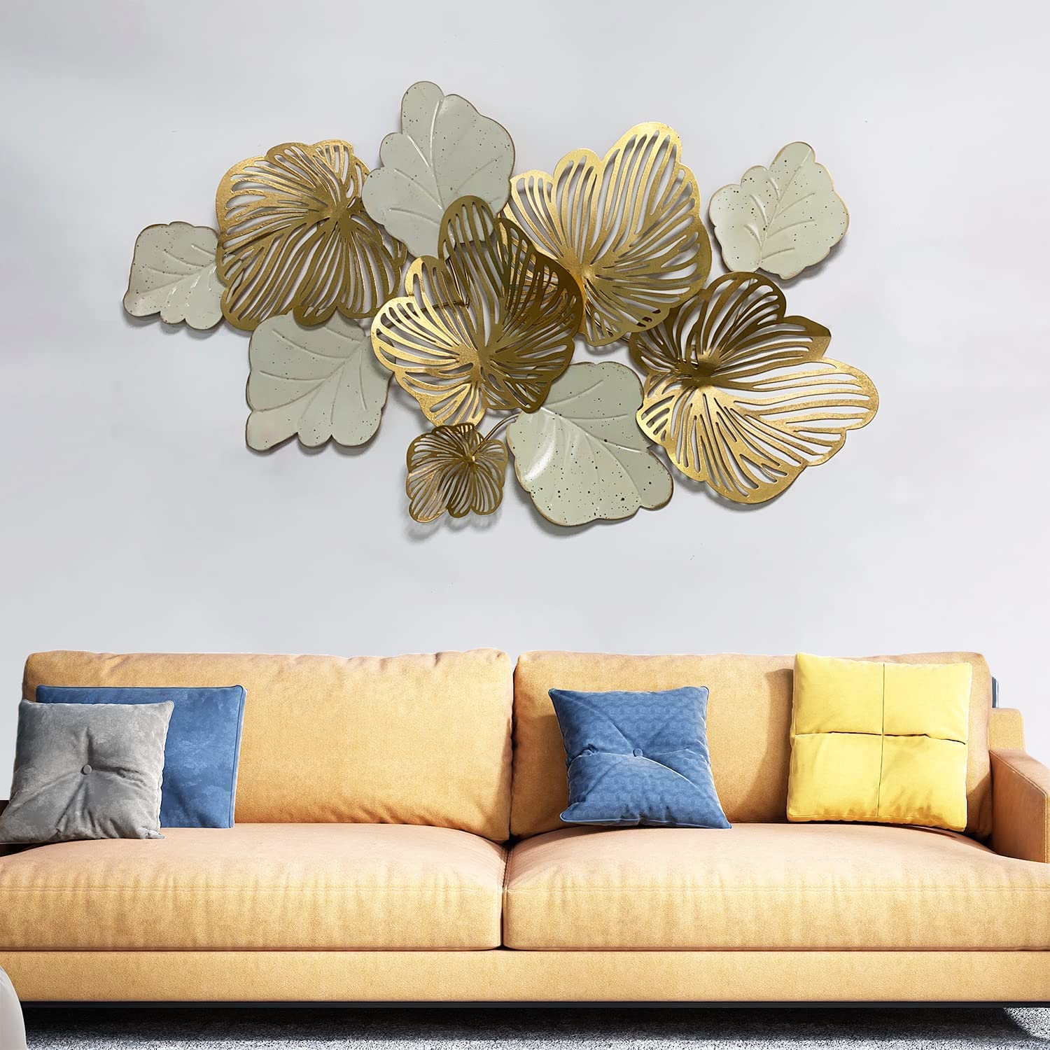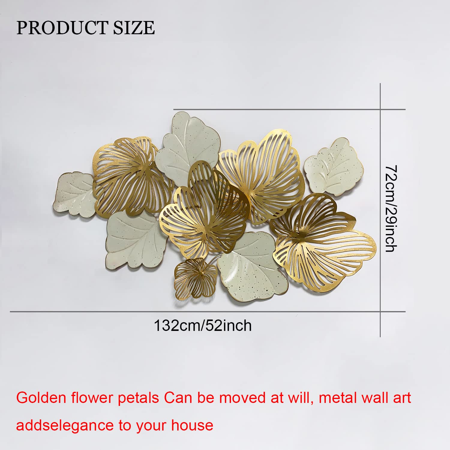 3D Gold Flower Metal Wall Art, Modern Blooming Wall Sculpture for Living Room, Bedroom or Kitchen Decor 52"x29"
