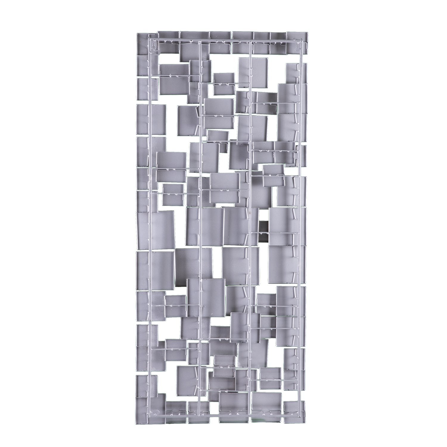 Details: Be a total square. Add a touch of the abstract to your home with the Wavson Wall Sculpture that features squares of varying sizes in a metallic ombre finish. Hang it horizontally or vertically to fit your space and satisfy those creative desires.This wonderful item features a contemporary, geometric design. Dimensions include: Overall: 47"W x 2.25"D x 21.25" H; Squares: 4.5" W x 4.5" H (lg), 3.5" W x 3.5" H (med), 2.5" W x 2.5" H (sm). This one-of-a-kind item weighs approximately 17 pounds. Only quality materials and manufacturing will do. Product materials include: Metal Tube, Iron Sheet, Iron Wire. Assembly: No assembly required. Made in China.