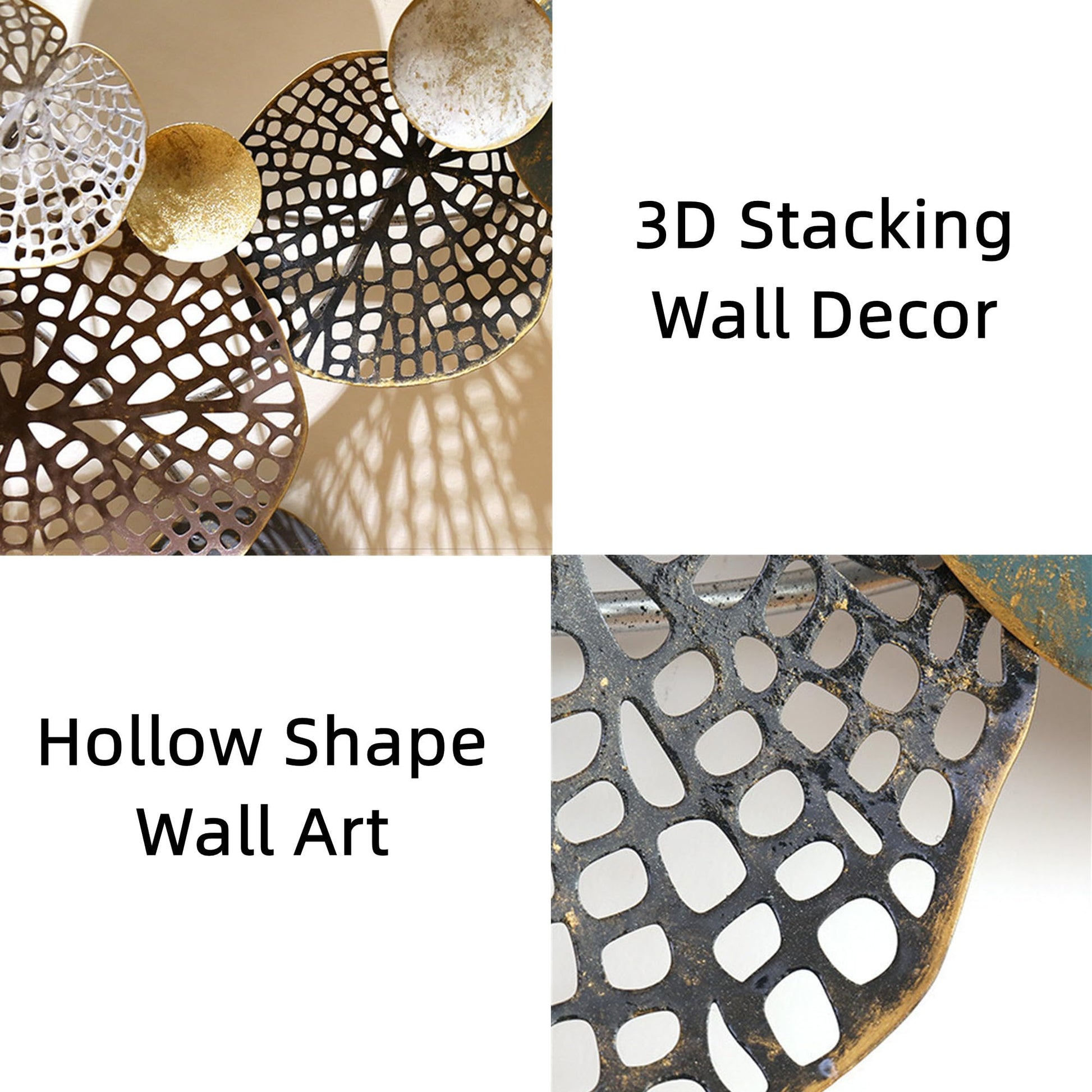 - 3D Lotus Leaf Metal Wall Decor : This large metal wall decor is multiple lotus leaves stacked on top of each other, 3D metal wall art will give you the character of vivid image on your wall. Blue, gold, and green colorful leaves wall decoration are stacking together for a natural feel.